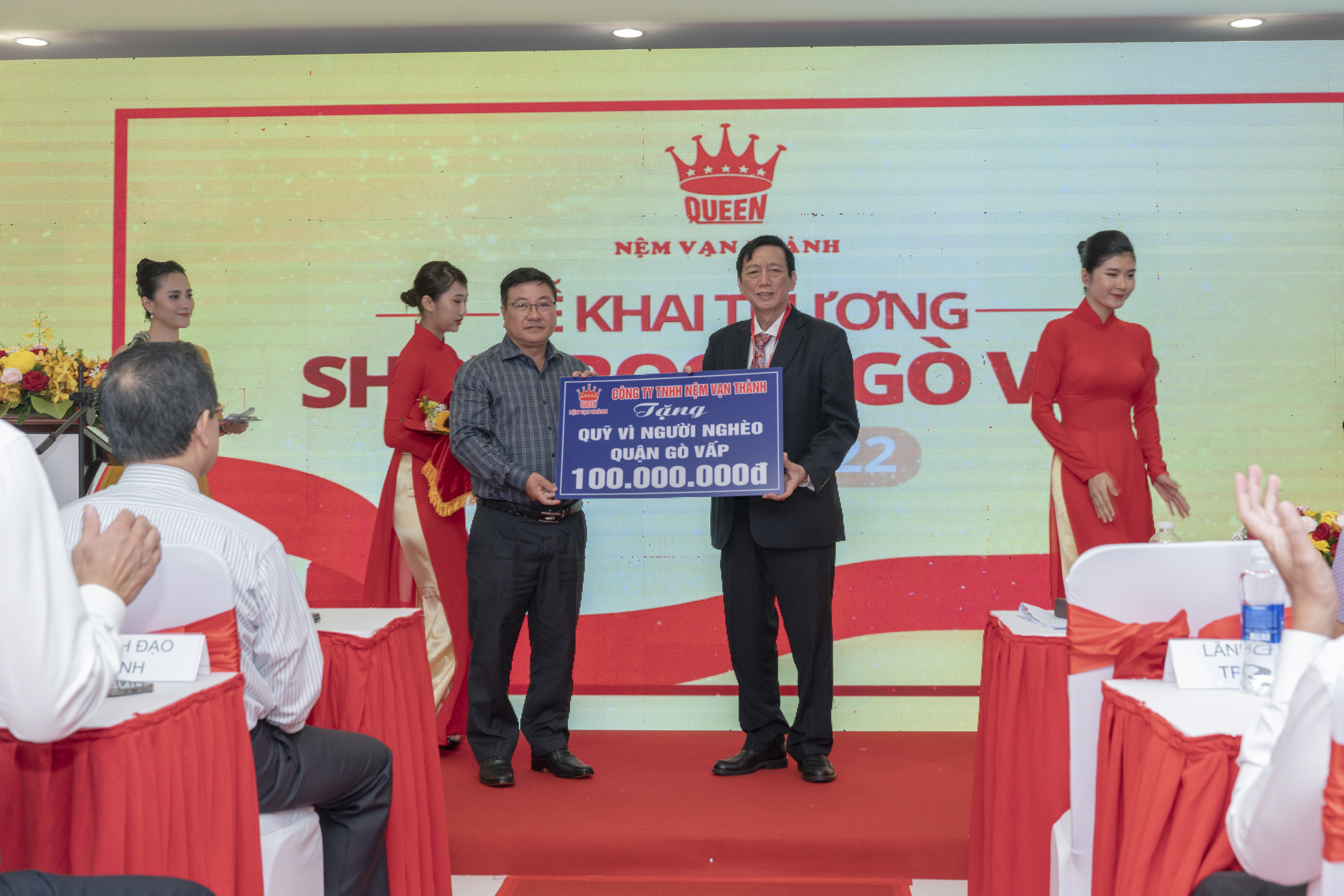 Ông Trương Ty – Tổng giám đốc công ty Nệm Vạn Thành đã trao tặng cho Quỹ Vì người nghèo Quận Gò Vấp số tiền 100 triệu đồng.