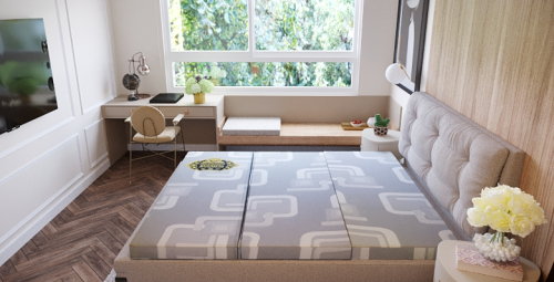 Nệm thiết kế gấp 3 mảnh tiện lợi giúp dễ dàng di chuyển hay vệ sinh áo nệm cùng với loại vải gấm xốp cao cấp và sang trọng nhập khẩu giúp bảo vệ làn da khỏi mẩn ngứa từ côn trùng.