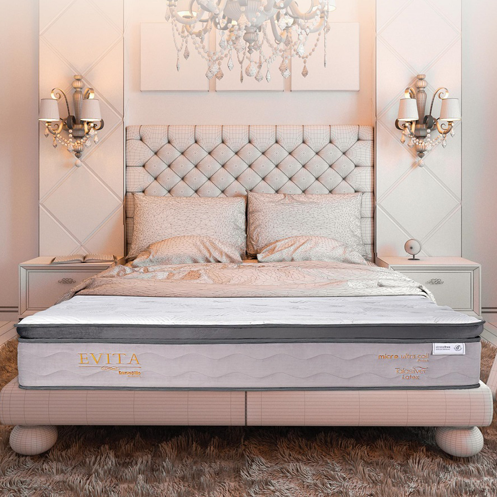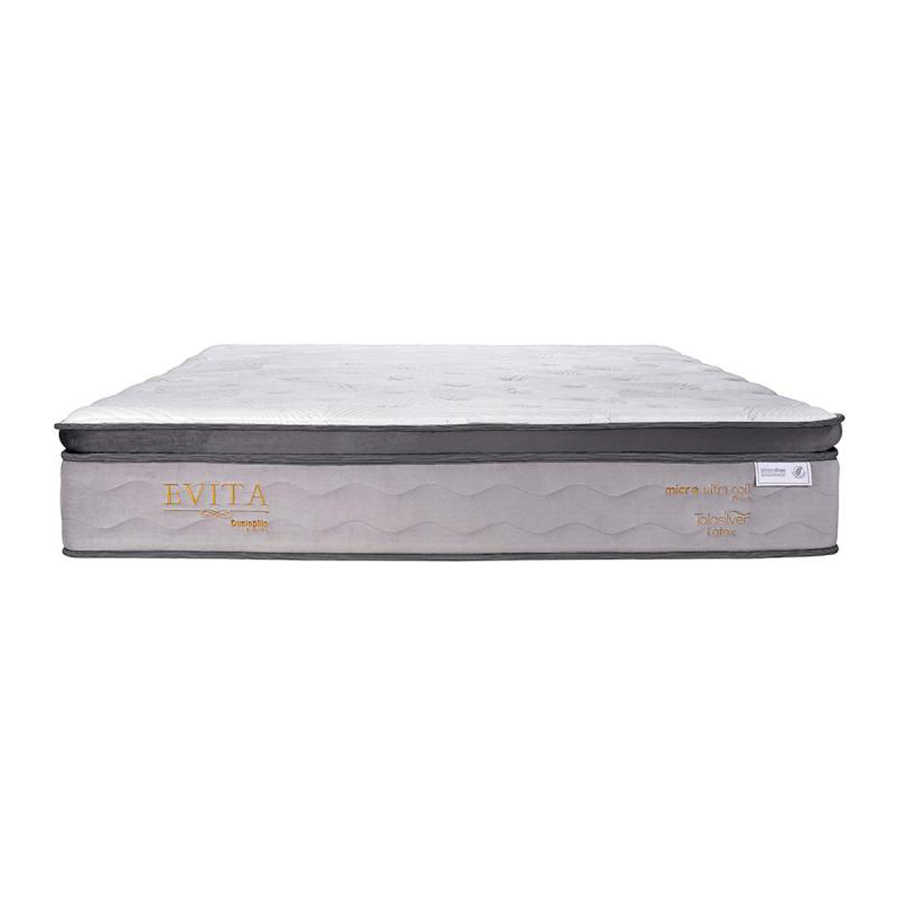 Nệm Lò Xo Dunlopillo Evita – NEW với hệ thống lò xo túi siêu nhỏ độc quyền Micro Ultra Coil Pocket chắc chắn, giảm sự truyền động tối đa. Đồng thời lớp đệm lót được làm từ chất liệt cao su nhập khẩu Talasilver cùng tấm Pillow Top được thiết kế sang trong, đẹp mắt.