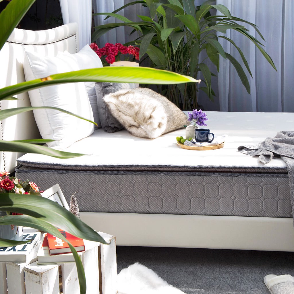 1. Lớp vải Knitting bao bọc toàn tấm nệm, được chần sâu, tạo cảm giác bồng bềnh và thẩm mỹ cho nệm lò xo.