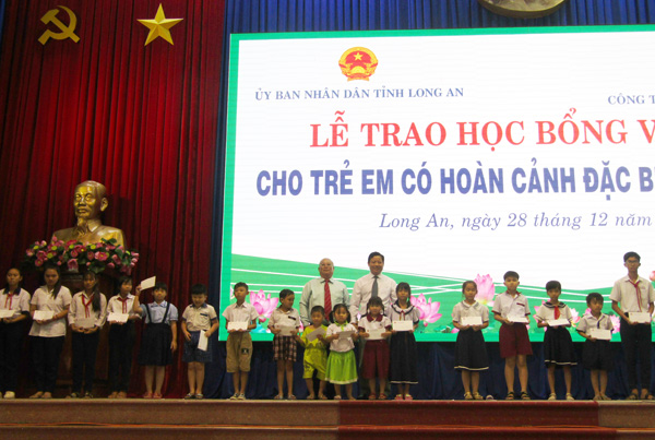 Long An – Trao 200 suất học bổng và quà cho trẻ em có hoàn cảnh đặc biệt khó khănChiều ngày 28/12/2019, UBND tỉnh phối hợp với công ty TNHH Nệm Vạn Thành tổ chức lễ trao học bổng và quà cho 200 trẻ em có hoàn cảnh đặc biệt khó khăn. Tham dự buổi lễ có Bí thư Tỉnh ủy, Chủ tịch HĐND tỉnh – Phạm Văn Rạnh, Phó Chủ tịch UBND tỉnh – Phạm Tấn Hòa, đại diện Sở, ngành, đơn vị có liên quan và các doanh nghiệp tài trợ chương trình.